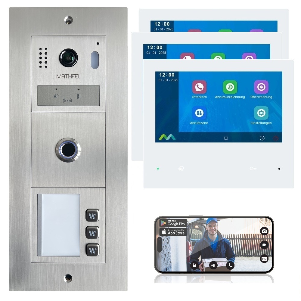 Diese Video-Türsprechanlage besteht aus einer Gegensprechanlage (Außenstation) mit Kamera und einem Fingerprint-Sensor. Ergänzt wird sie durch drei Antwortstationen für den Innenraum mit Touch-Bildschirm und WLAN-Schnittstelle. Die Außenstation ermöglicht es, einerseits den Besucher an der Tür nach dem Klingeln zu sehen und mit ihm zu sprechen. Andererseits können alle Personen, deren Fingerabdrücke im System gespeichert sind, die Tür nach Auflegen des Fingers öffnen. Über die 2-Draht-Verbindung werden sämtliche Funktionen von der Türstation an die Innenstation angeschlossen: Klingel, Video und Bild, Gegensprechanlage, Steuerung des Türöffners und die interne Kommunikation (Interkom) zwischen den Innenmonitoren. Die Produkt-Technik ermöglicht es, die Türsprechanlage mit mehreren Wohneinheiten gemeinsam zu nutzen. Jede Einheit kann bis zu vier Monitore anschließen. Das System kann maximal vier Außenstationen erfassen.
