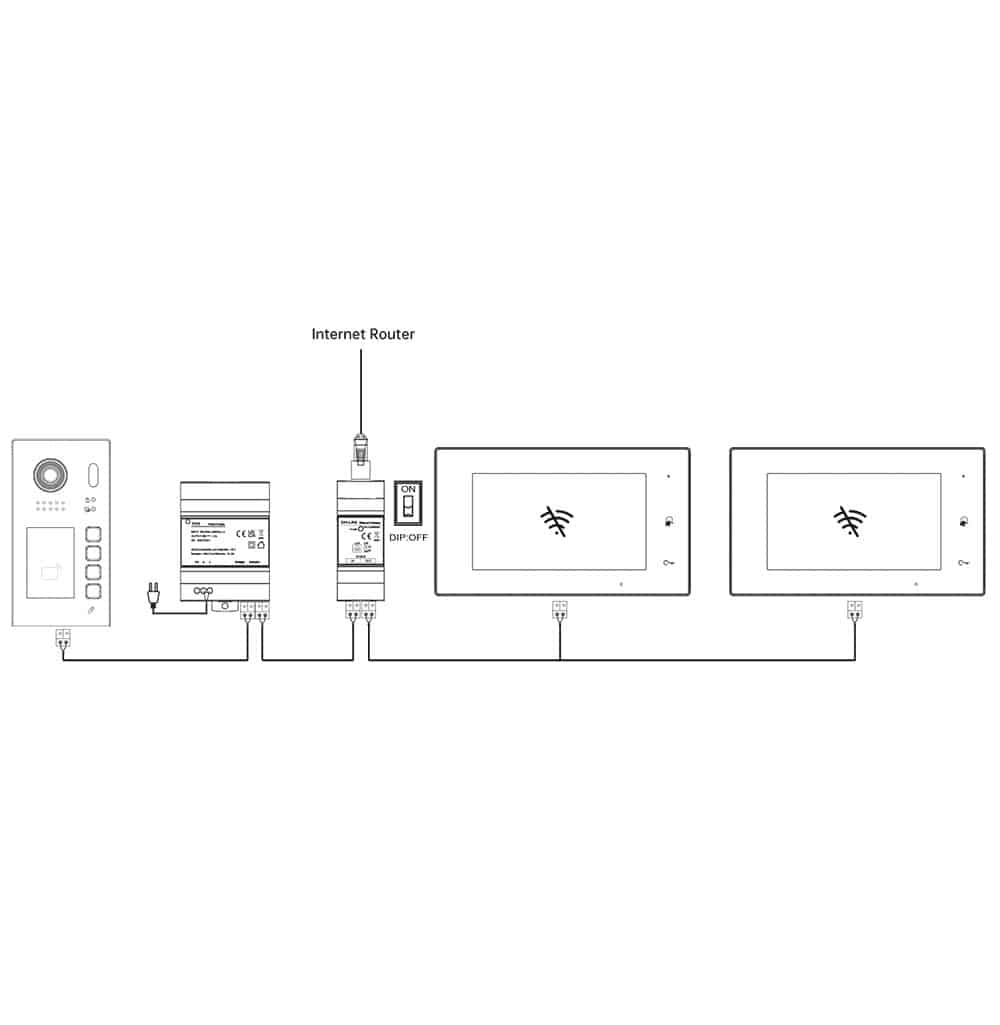 Dieses Modul ermöglicht den Anschluss von IP Kameras, die dann über das Bussystem der Video Türsprechanlage auf allen Monitoren angezeigt werden können. Sie können an diesem Modul entweder eine Kamera direkt anschließen (wenn diese eine externe Spannungsversorgung erhält) oder Sie schließen einen geeigneten PoE Switch mit zahlreichen IP Kameras an dieses Modul an, um die Kameras auf allen Monitoren der Sprechanlage anzeigen zu können.